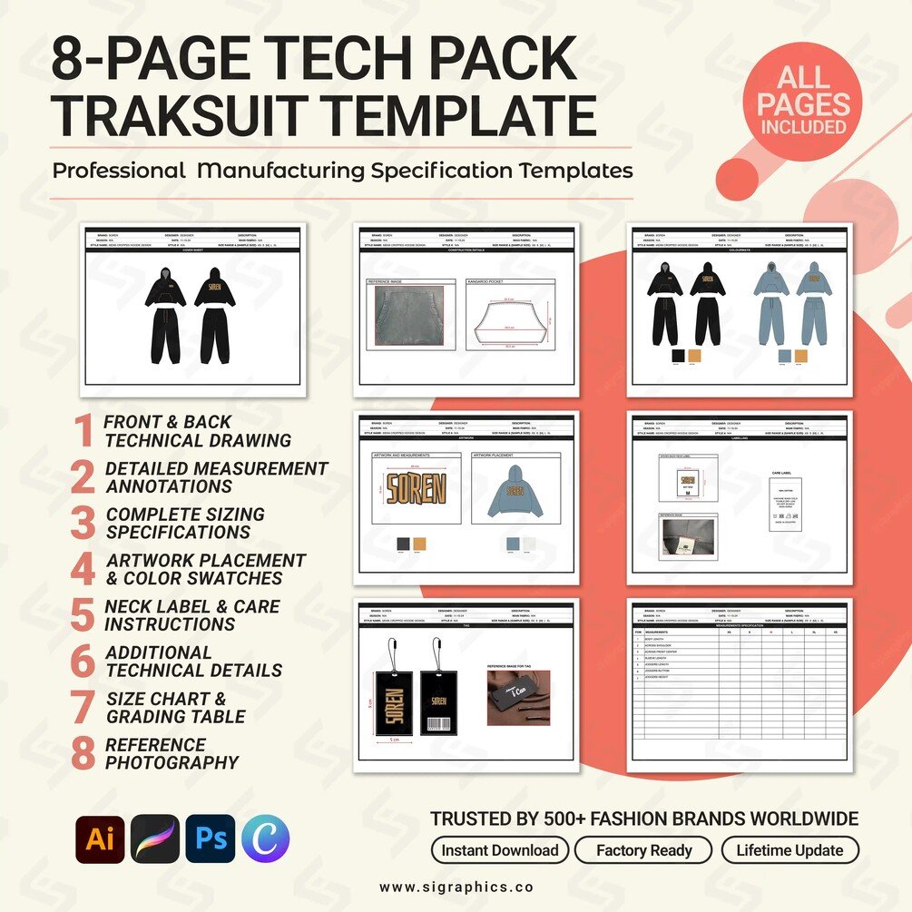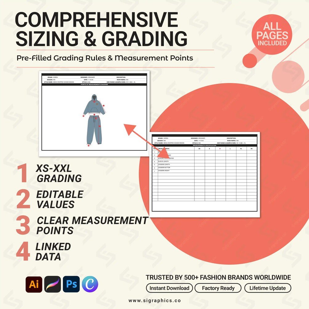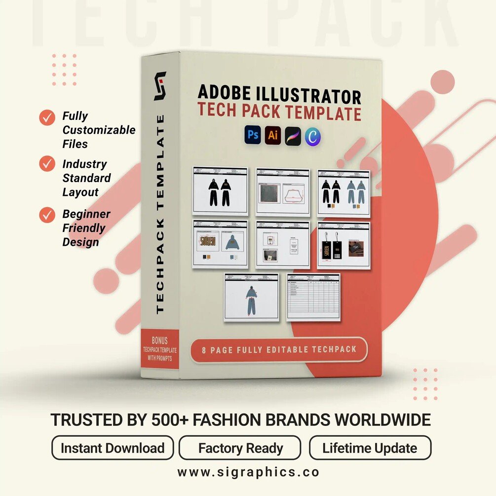 • Save Time and Effort: Our fully customizable Adobe Illustrator and PDF templates allow you to quickly create professional tech packs without starting from scratch. No more tedious formatting or manual calculations!