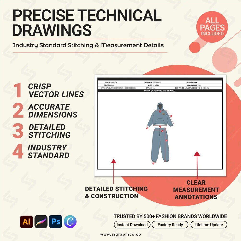 • Professional and Consistent Results: Ensure consistent quality and accuracy in your tech packs, leading to smoother production and better final products.